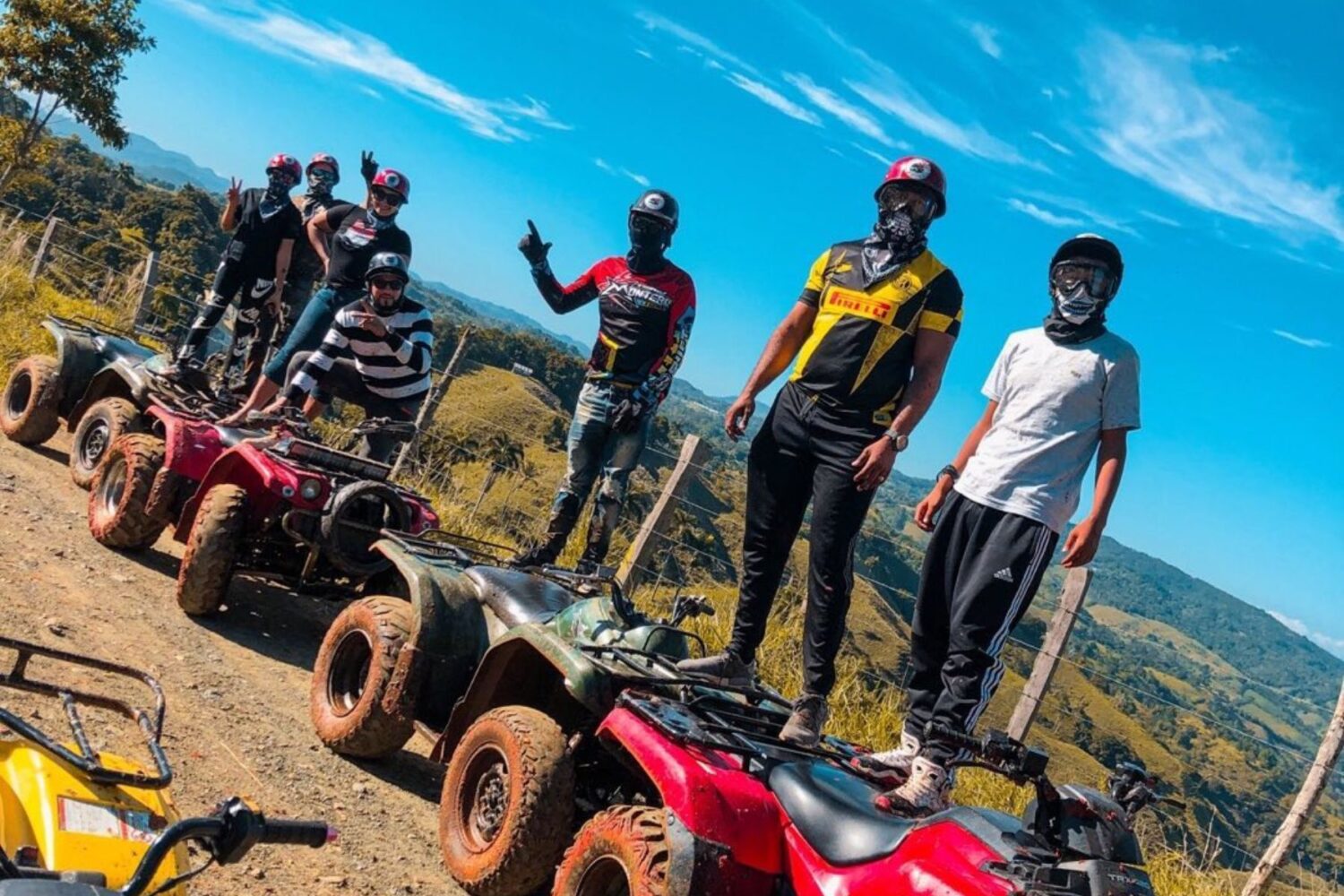Incluye: • Transporte de ida y vuelta • Refrigerio – Desayuno • Recorrido en Four Wheels durante 2 horas • Visita de montañas y rios en Jarabacoa • Visita y recorrido al Salto de Baiguate • Visita a Café Colao • Almuerzo Buffet • Música y animación durante el recorrido • Asistencia del staff
